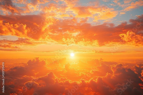 © JIALU, Naklejka premium Dreamy sunset sky with glowing orange and red clouds illuminated by sunlight