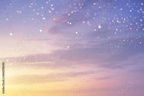 Fototapeta premium Dreamy watercolor sky with soft clouds and twinkling stars at dusk