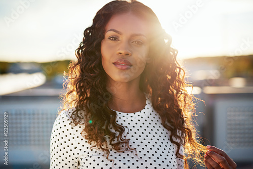 Fototapeta premium Dreamy young woman backlit by the rising sun