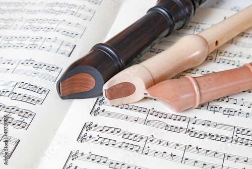 © RPL-Studio, Naklejka premium Drei Flöten auf Noten
