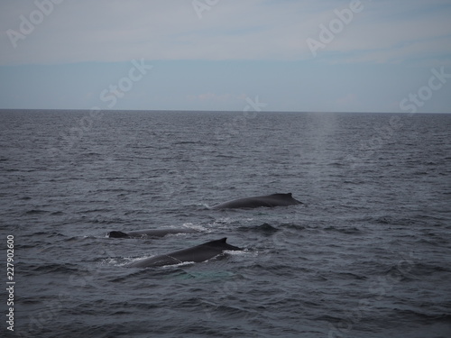 © michellemilker, Fototapeta premium Drei parallel schwimmende Buckelwale