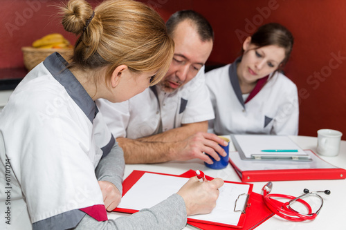 Fototapeta premium Drei Pfleger bei einer Besprechung