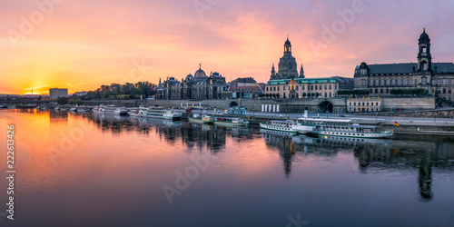 Obraz premium Dresden Altstadt Panorama bei Sonnenaufgang, Sachsen, Deutschland
