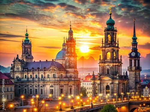 Naklejka premium Dresden Cathedral & Semper Opera House - Romantic Bokeh Cityscape