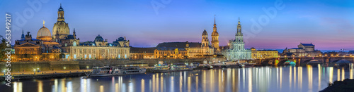 © Blickfang, Obraz premium Dresden Elbufer Nacht Dom Semperoper Frauenkirche Panorama