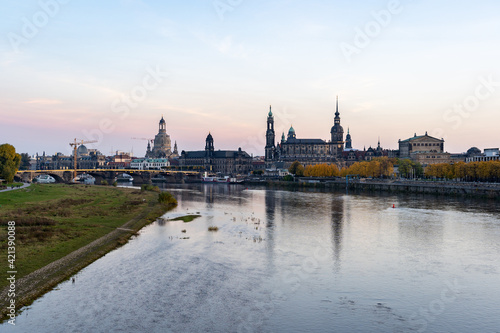 Obraz premium Dresden urban skyline at Elbe River in autumn season. Beautiful colorful...