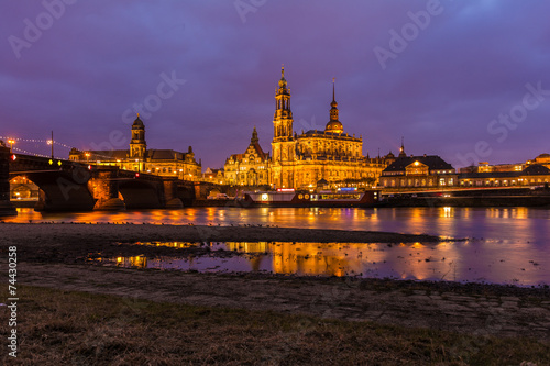© kentauros, Obraz premium Dresdens Skyline im Abendlicht
