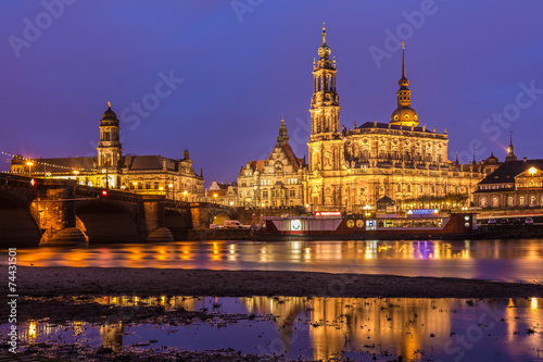 © kentauros, Obraz premium Dresdens Skyline im Abendlicht