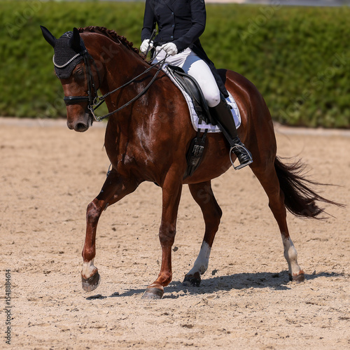 Fototapeta premium Dressage riding, dressage rider warming up before the