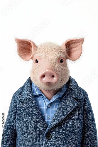 © Downloads, Fototapeta premium Dressed Up Pig Portrait Against a Minimalist White Background