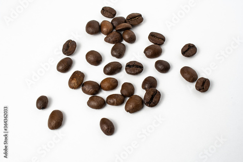 © Maksim, Naklejka premium Drewniana łyżka z brązowymi ziarnami pszenicy w środku na na białym tle. Owies żytni jęczmień. Widok z góry. Zbliżenie. Baner na stronę internetową