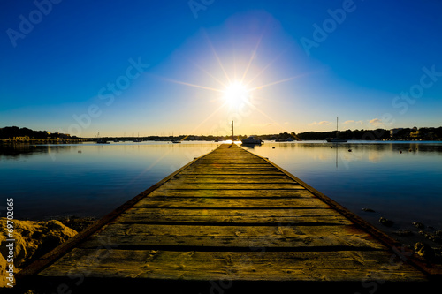 Fototapeta premium drewniany pomost i zachód słońca