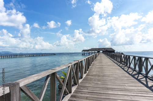 © mawardibahar, Obraz premium Drewniany pomost z błękitnym niebem