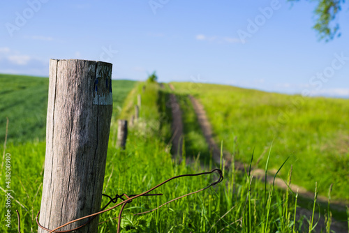 © Karol, Fototapeta premium Drewniany słup ogrodzenia