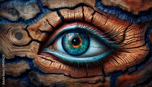 © Elżbieta Kaps, Obraz premium Drewno tekstura, drewniany wzór z okiem, dekoracja tapeta generative ai