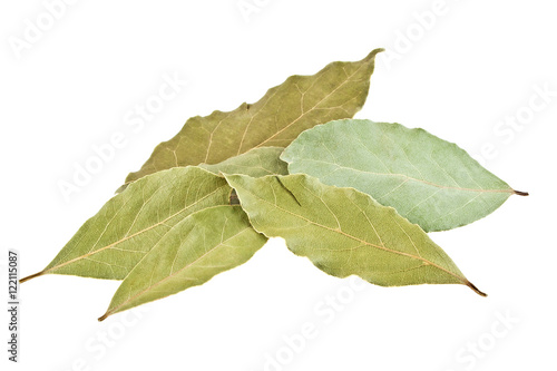 Obraz premium Dried bay laurel leaves isolated on a white background close up