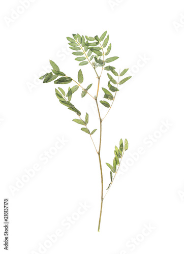 © New Africa, Naklejka premium Dried branch with foliage on white background, top view