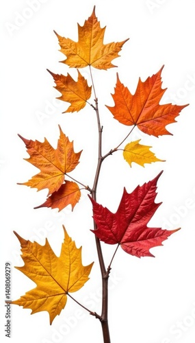 © vilavanh, Fototapeta premium Dried branches with fall leaves isolated on white, autumnal, branches