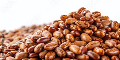 Fototapeta premium Dried Brown Beans Heap, Close-Up, Isolated on White Background - High-Resolution Stock Photo