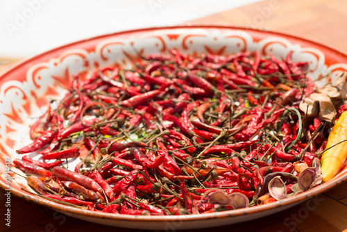 Fototapeta premium Dried chili on thai style plate.