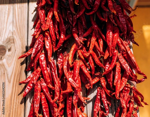 © graphic, Fototapeta premium Dried chili peppers hanging