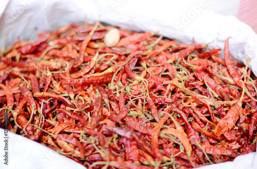 Fototapeta premium Dried chili peppers in street of Kathmandu, Nepal.