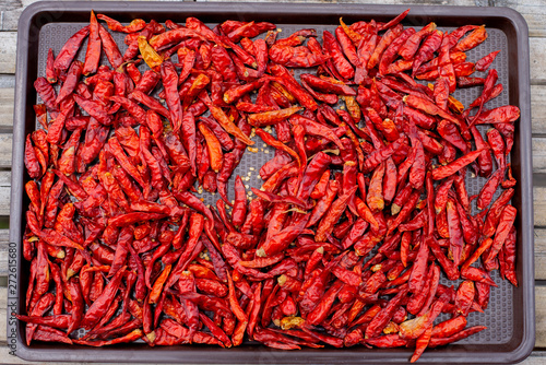 Fototapeta premium Dried chillies on the tray
