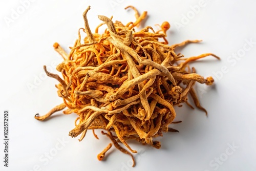 © Sayfar, Obraz premium Dried cordyceps militaris mushroom isolated on white background high angle