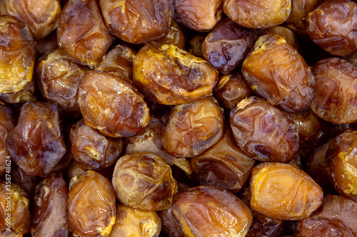 Obraz premium Dried dates background, sort bawalini, vegan sweet superfood, topview