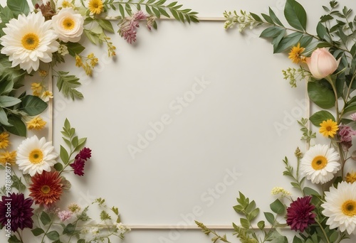 © Pod, Fototapeta premium Dried flowers and leaves arranged in a frame on a light background