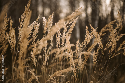 © Gioia, Fototapeta premium Dried fluffy grass in sunlight blurry natural background
