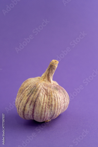 Fototapeta premium Dried garlic bulb against purple background. Ideal for culinary or...