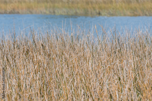 Obraz premium Dried Grass in March with Water in Background