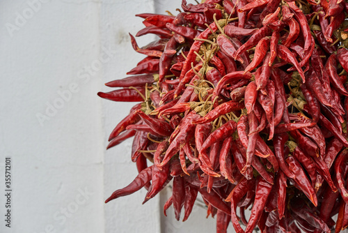 Fototapeta premium Dried hot red pepper om sale in Hungarian street store
