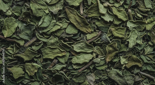 © Octopus16, Fototapeta premium Dried Mint Leaves: A Textured Green Herbal Background