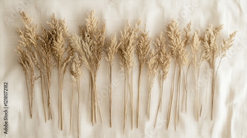 Fototapeta premium Dried Pampas Grass Arranged on Beige Fabric