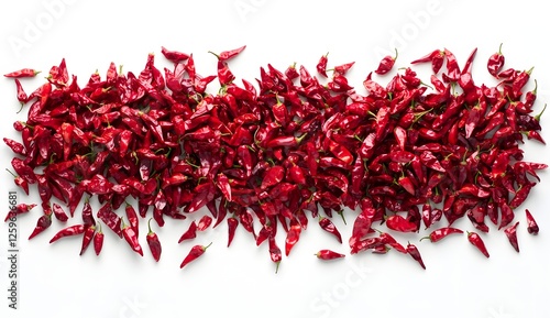© a muh sakaria, Naklejka premium Dried red chili peppers arranged on white background