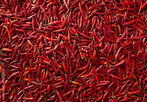 © MD, Fototapeta premium Dried Red Chili Peppers Background Texture