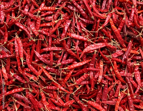 © Bodrex, Fototapeta premium Dried red chili peppers close-up