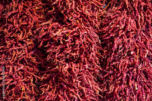 © LP2Studio, Naklejka premium Dried red chili peppers close-up view in Chengdu, Sichuan province, China