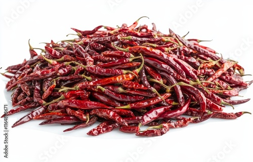 Fototapeta premium Dried red chili peppers pile isolated on white.
