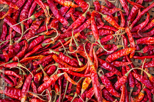 Fototapeta premium Dried red hot chilli pepper closeup background