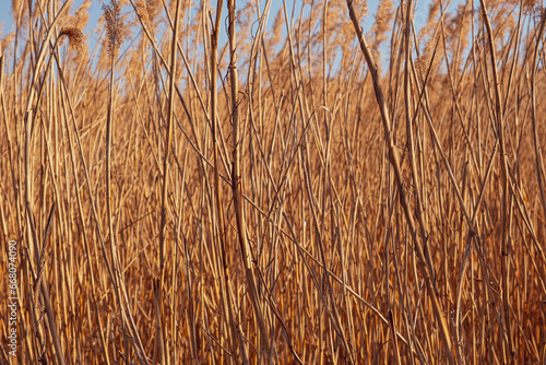 © Roberto Sorin, Fototapeta premium dried rush in the wind with blue sky