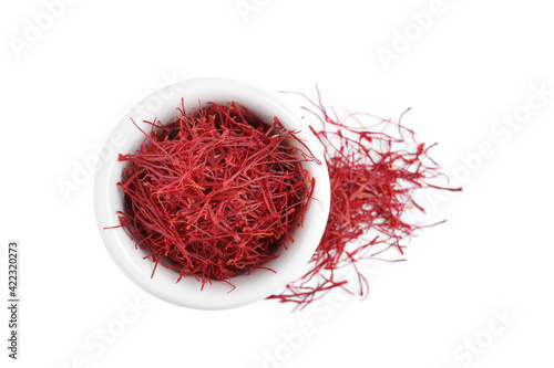 © New Africa, Naklejka premium Dried saffron on white background, top view