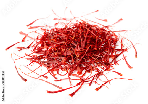 © Amy Lv, Naklejka premium dried saffron spice isolated on white background