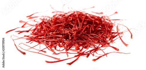 © Amy Lv, Naklejka premium dried saffron spice isolated on white background