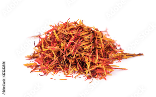 Naklejka premium Dried saffron spice isolated on white background.