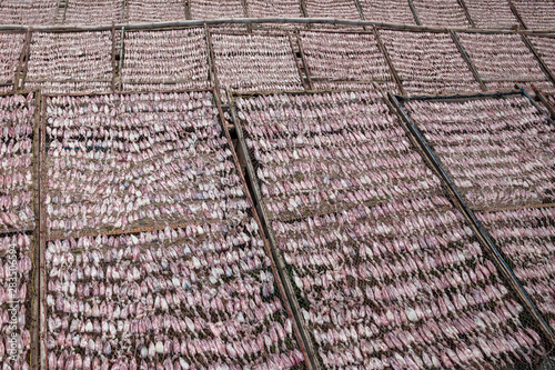 © apple2499, Fototapeta premium Dried squid on a wire rack.
