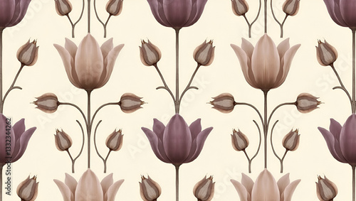 Obraz premium Dried Tulip Motifs and Earthy Purple Tones: Rustic Seamless Tile Pattern for...