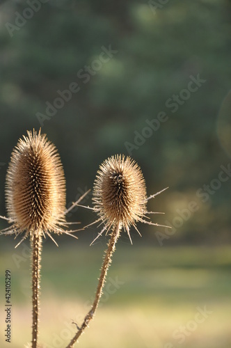 Obraz premium Dried wild teasel in the wind